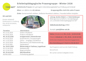 Zur kostenfreien Anmeldung zum Präsenz-Informationsabend am Mittwoch, den 04. Februar von 18:30 bis 20 Uhr im Haus des Engagements schreiben Sie uns bitte eine e-Mail an post [at] time-aut.de. Wir freuen uns über Ihre Nachricht :-).